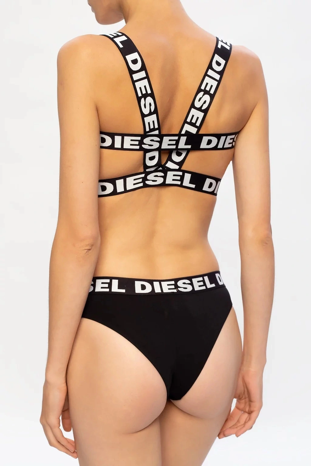 Černé kalhotky značky Diesel s vyšívaným bílým logem štítku v pase.