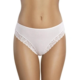 Hezké dámské kalhotky Ganidar 41 klasického střihu s vyšším pasem lemované krajkou. Dostupné jsou v bílé a černé barvě.
