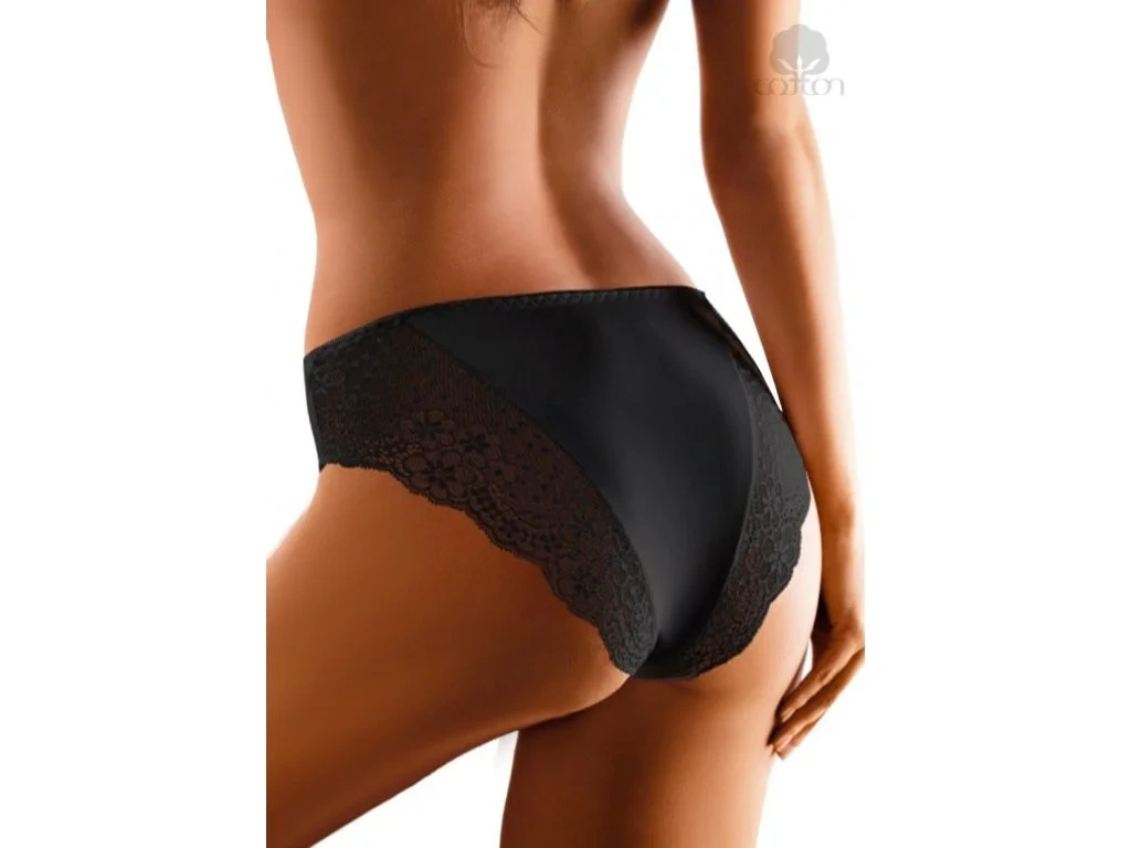 Bavlněné dámské kalhotky s příměsí elastanu 8%. Zadní část zakončená ažurovou krajkou s květinovým vzorem.