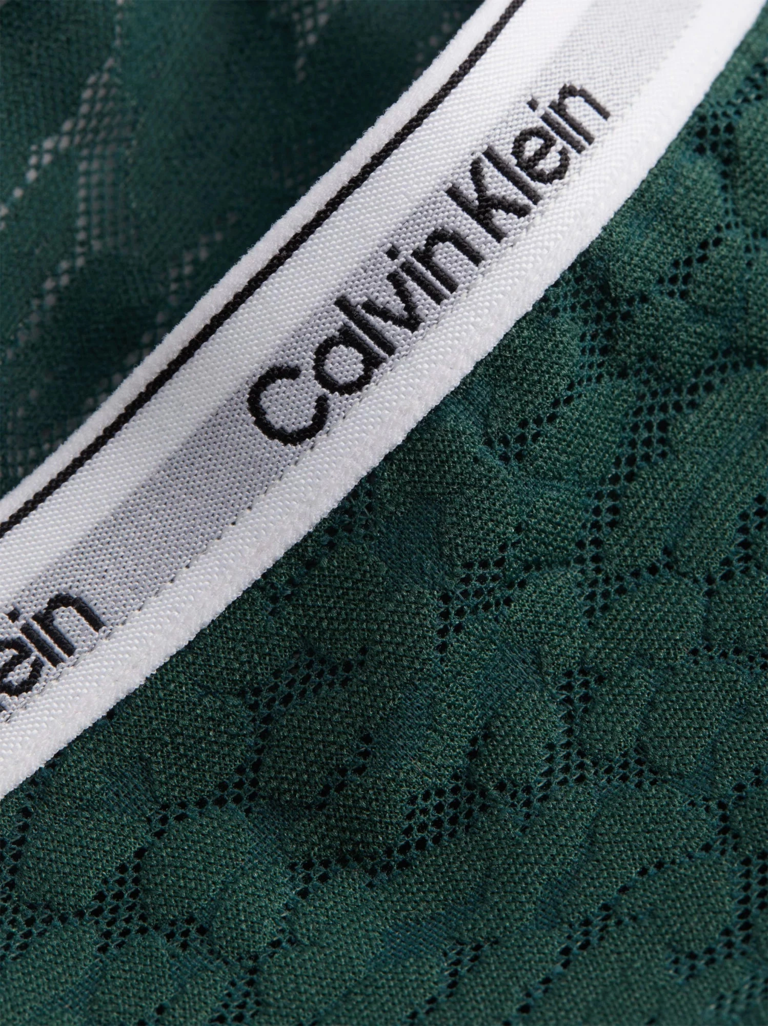 - poloprůhledná leopardí krajka- směs nylonu a elastanu- středně vysoký pas- elastický pas s podpisem Calvin Klein