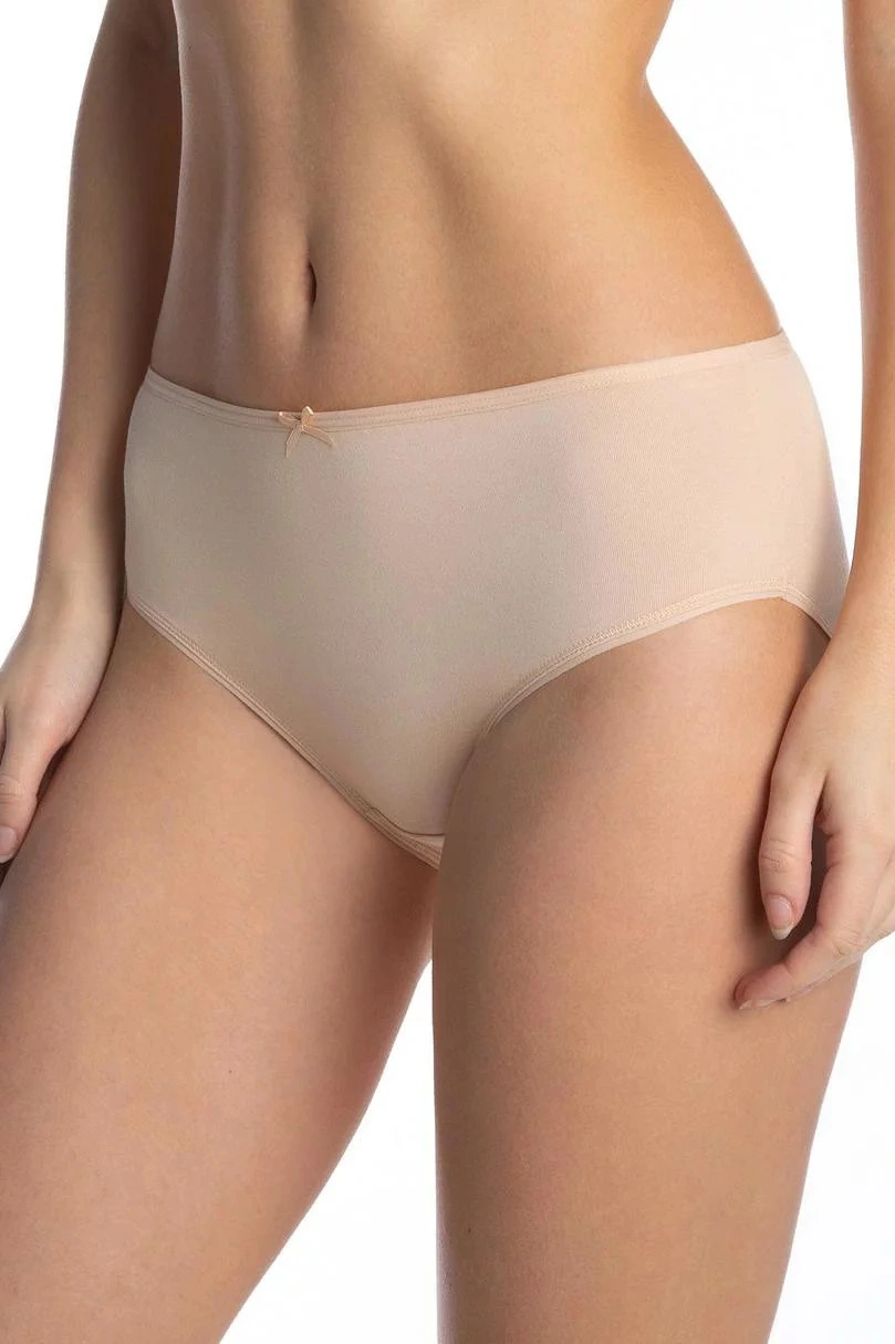 Dámské kalhotky typu "bikiny" v béžové barvě, které jsou balené po třech kusech.