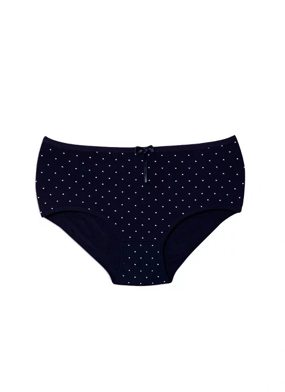Klasické dámské kalhotky, které jsou ozdobené puntíky. V pase modelu je malá mašlička. Kalhotky js