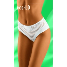 Dámské kalhotky ušité z ekologické bavlny a přídavku lycry. Vpředu jsou kPunčochové kalhotyové všivky. Pozadí hladké.