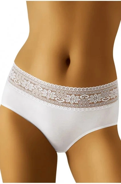 Dámské bavlněné kalhotky, vrchní díl obšitý širokou květinovou krajkou. Velikosti: M (obvod v pasu 56-64 cm), L (64-74 cm), XL (74-84 cm), XXL (84-94 cm)