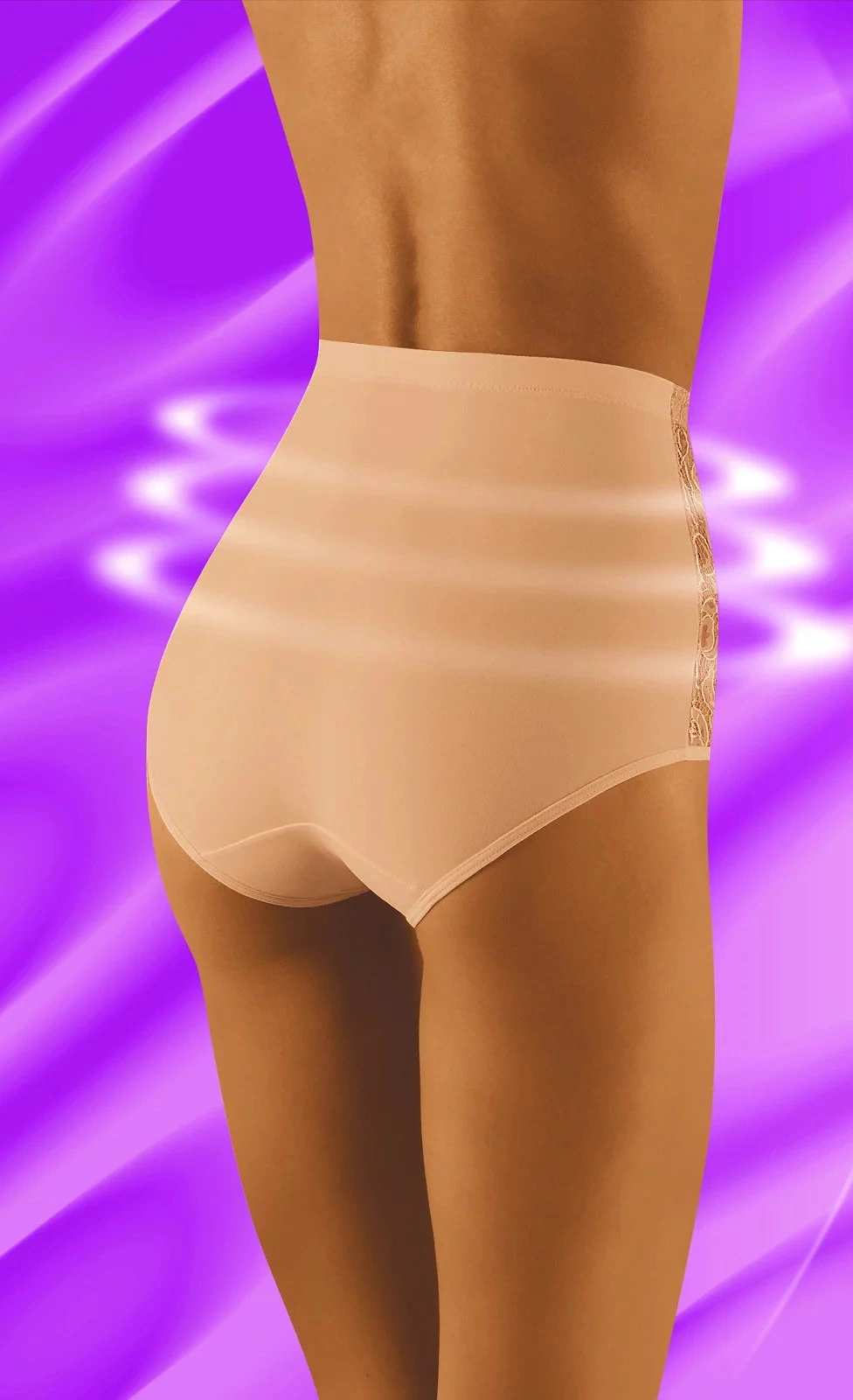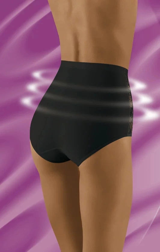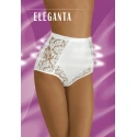 Elegantní dámské kalhotky ušité z kvalitního materiálu s květovanou krajkou. V horní části pasu je zevnitř silikonový pásek, který zabraňuje sesouvání. Kalhotky jsou korigační - zeštíhlují břicho a podtrhují linii pasu.