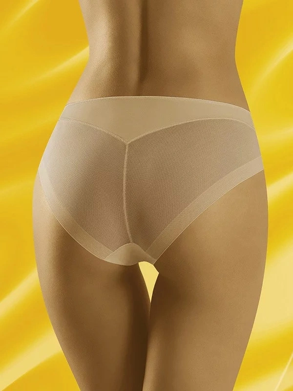 Hladké, velmi zajímavé kalhotky, které opticky zeštíhlují boky a prodlužují nohy. To je způsobeno elastickým tylem, který se zde objevuje na vhodných, dokonce strategických místech. Polská značka Wolbar - jedna z nejlepších, pokud jde o spodní prádlo. Složení: 83 % polyamid, 17 % elastan (polyuretan).