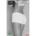 Bezešvé dámské kalhotky - šortky, které jsou vyrobené z jemné a prodyšné bavlny. Kalhotky mají ploché okraje. Model při nošení netlačí a nerýsuje se pod oblečením. Pas je olemovaný jemným stahovacím lemem. Kalhotky se ideálně přizpůsobují tělu, jsou vypasované a při nošení velmi pohodlné.