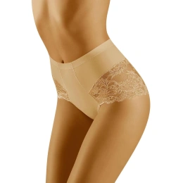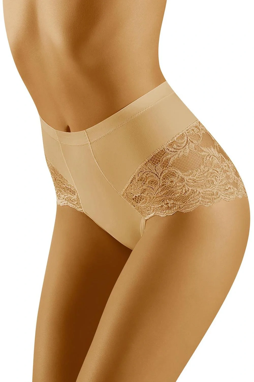 Představujeme vám spodní díl bikin, který láká na krásnou prolamovanou krajku šplhající podél stehen i po hýždích. Mírně vyšší střih, který tvaruje siluetu - prádlo mírně stlačuje tělo, zeštíhluje bříško a tvaruje linii stehen. Krajka rozhodně potěší oko a zvýrazní hýždě. Spodní prádlo pro "speciální úkoly" snad ještě nikdy nebylo tak sexy! Složení: 58 % polyamid, 42 % elastan.