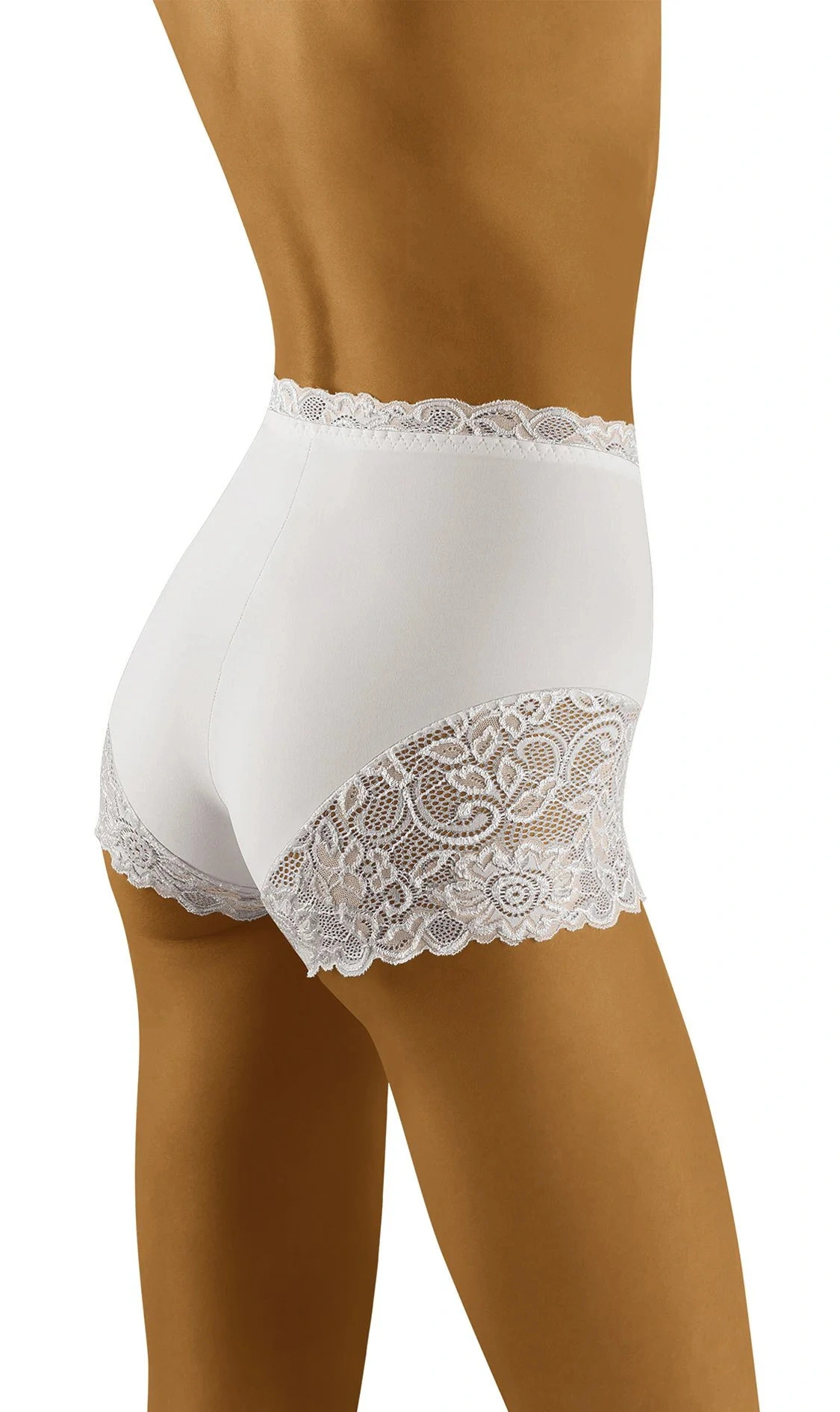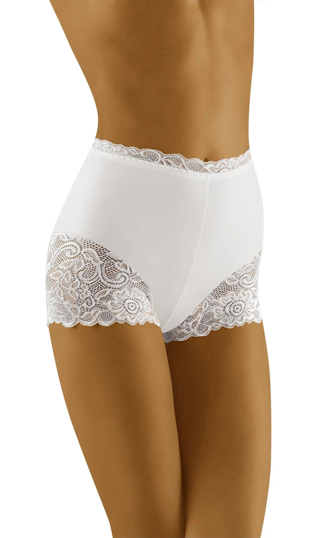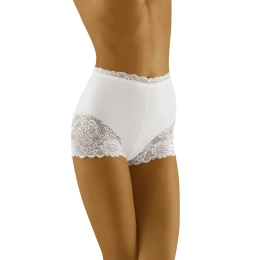 Kombinace ženskosti a pohodlí: vyšší střih, krajkové nohavičky, krajkové lemování v pase... Tyto šortky byly vytvořeny pro ženy, které ocení spodní prádlo s vyšším, postaveným střihem. Jsou pohodlné a komfortní, jemně tvarují postavu. Přední i zadní díl - hladký. 87% polyamid, 13% elastan.