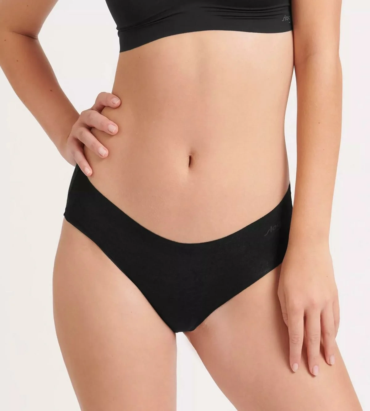 - Modelka má na sobě bederní kalhotky ve velikosti S