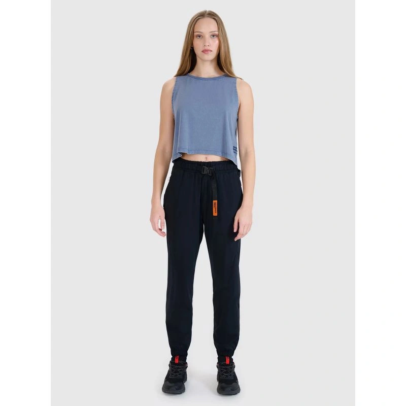Dámské kalhoty pro volný čas jsou ideální volbou pro lifestylové i sportovní outfity. Pravidelný střih zajišťuje pohodlné nošení, zatímco zúžené nohavice s elastickou šňůrkou dodávají moderní, dynamický vzhled.