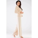 Kalhoty s vysokým sedem a širokými nohavicemi, bez kapes. Kalhoty se zipem a knoflíkem vpředu. Skvěle vypadají se sakem stejné barvy. Výrobek vyrobený v Polsku.