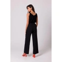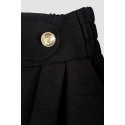 Design těchto lehkých kalhot si zamilujete - široké nohavice se záhyby, částečně elastický pas a ozdobné zlaté knoflíky vpředu.