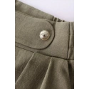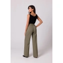 Design těchto lehkých kalhot si zamilujete - široké nohavice se záhyby, částečně elastický pas a ozdobné zlaté knoflíky vpředu.