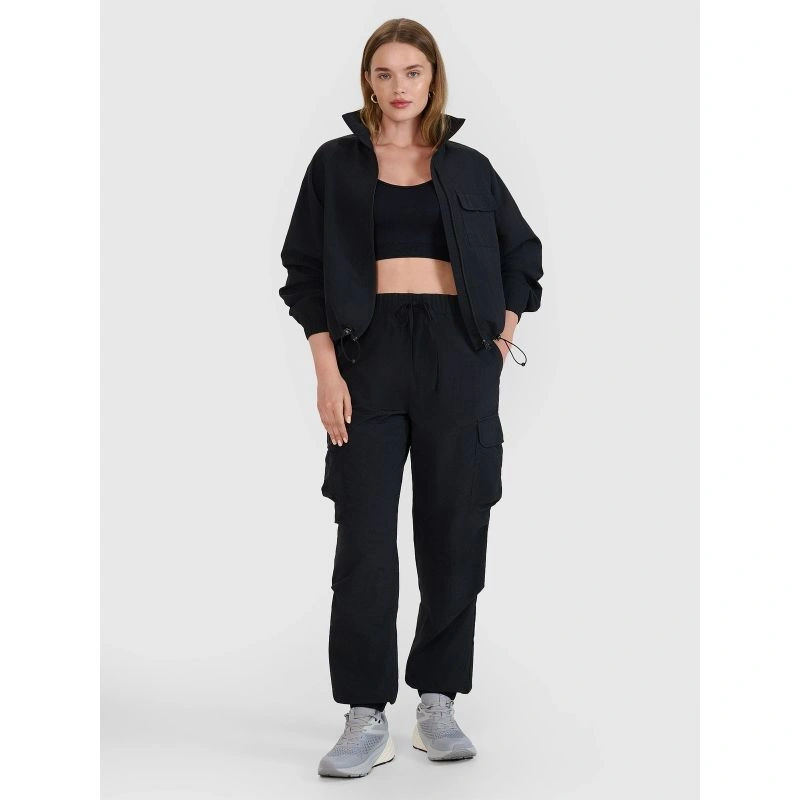 Dámské tkané kalhoty se stahovací šňůrkou v pase jsou ideální volbou pro každodenní nošení a jsou vhodné pro životní styl i sport. Jejich volný střih a široké nohavice se stahovací šňůrkou v pase zaručují volnost pohybu, pohodlí a moderní vzhled.