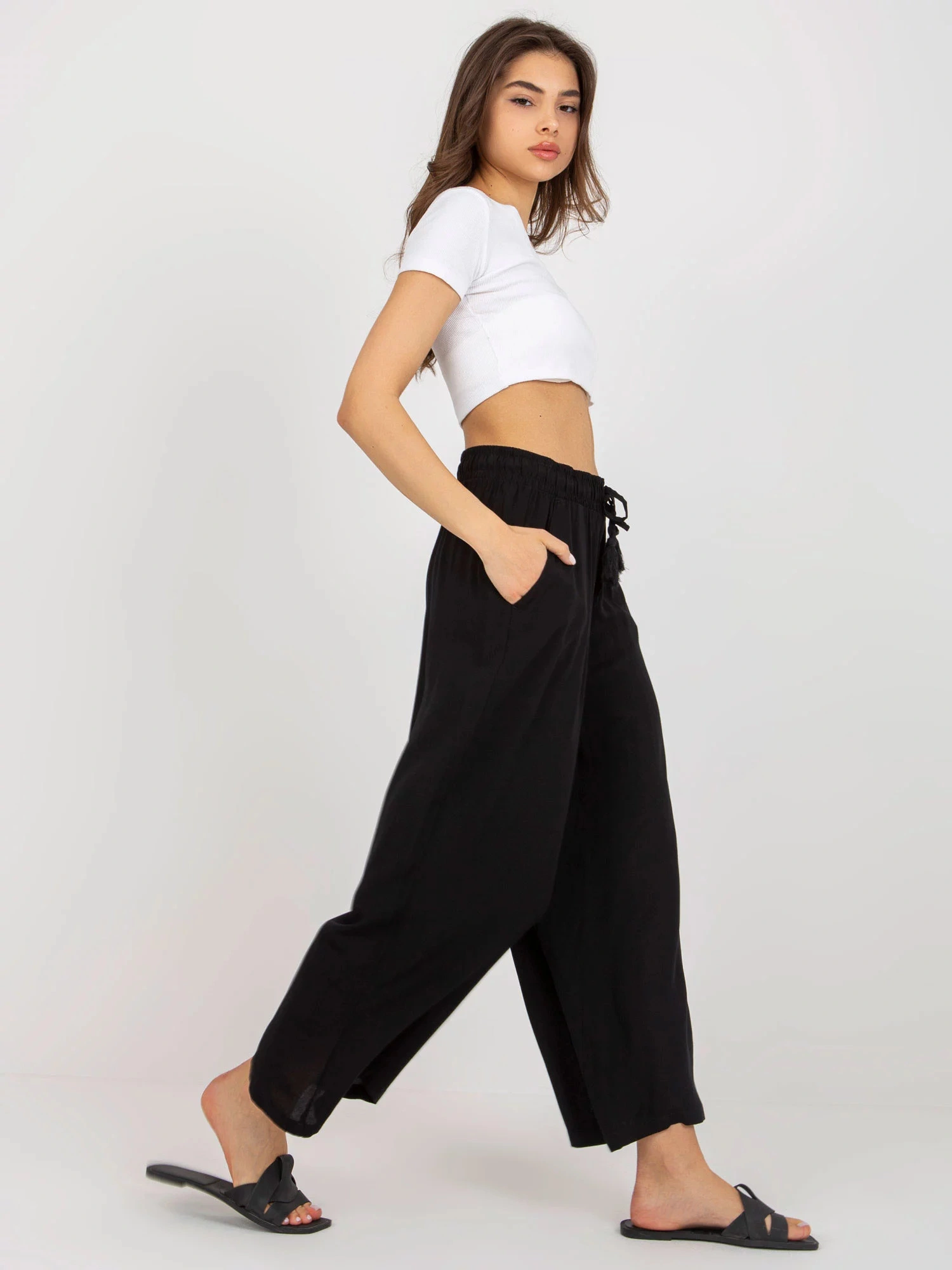 Rozměry kalhot ve velikosti S měřené na plocho: šířka v pase - 34 cm, výška v pase - 35 cm, celková délka - 96 cm.