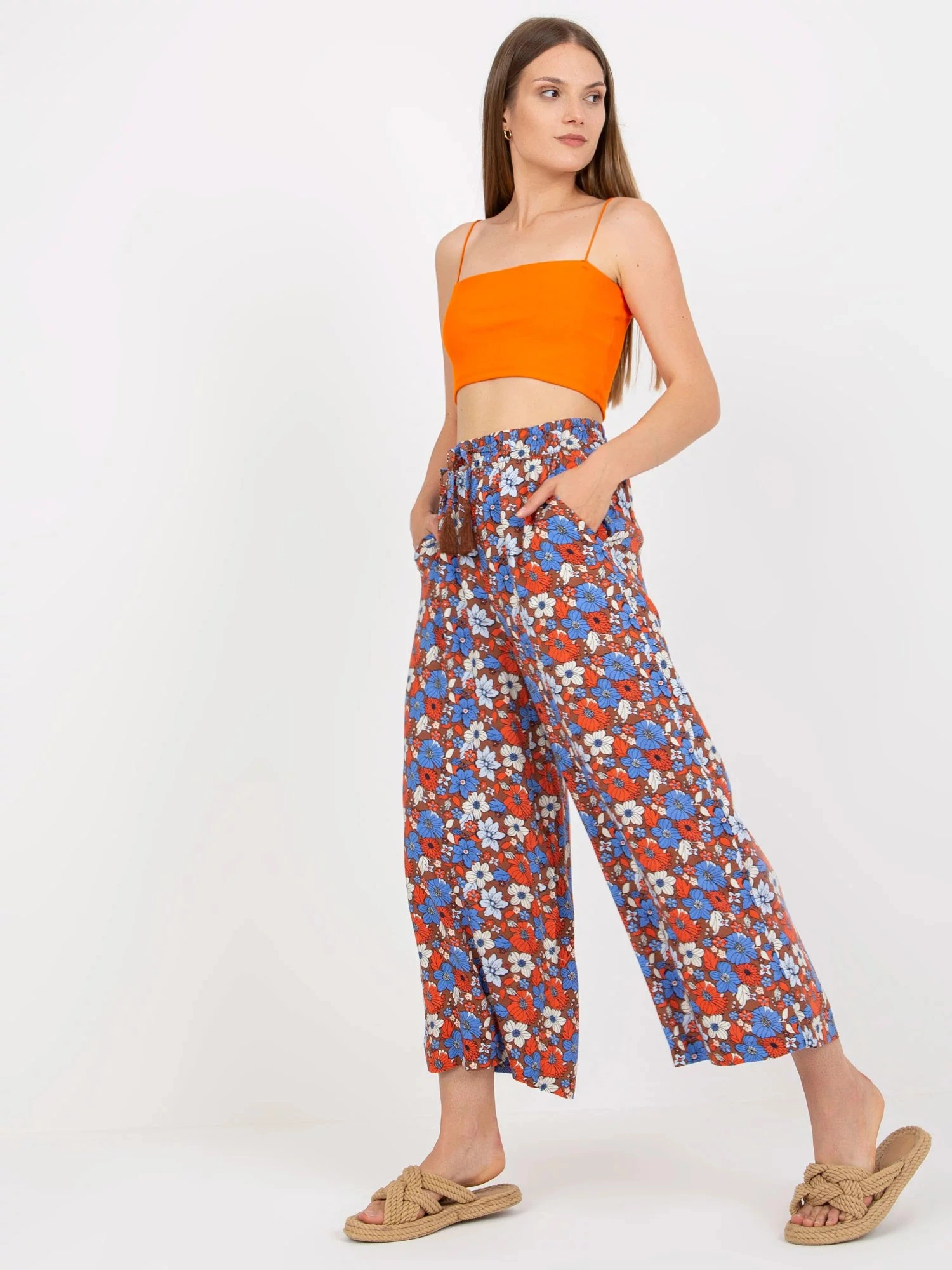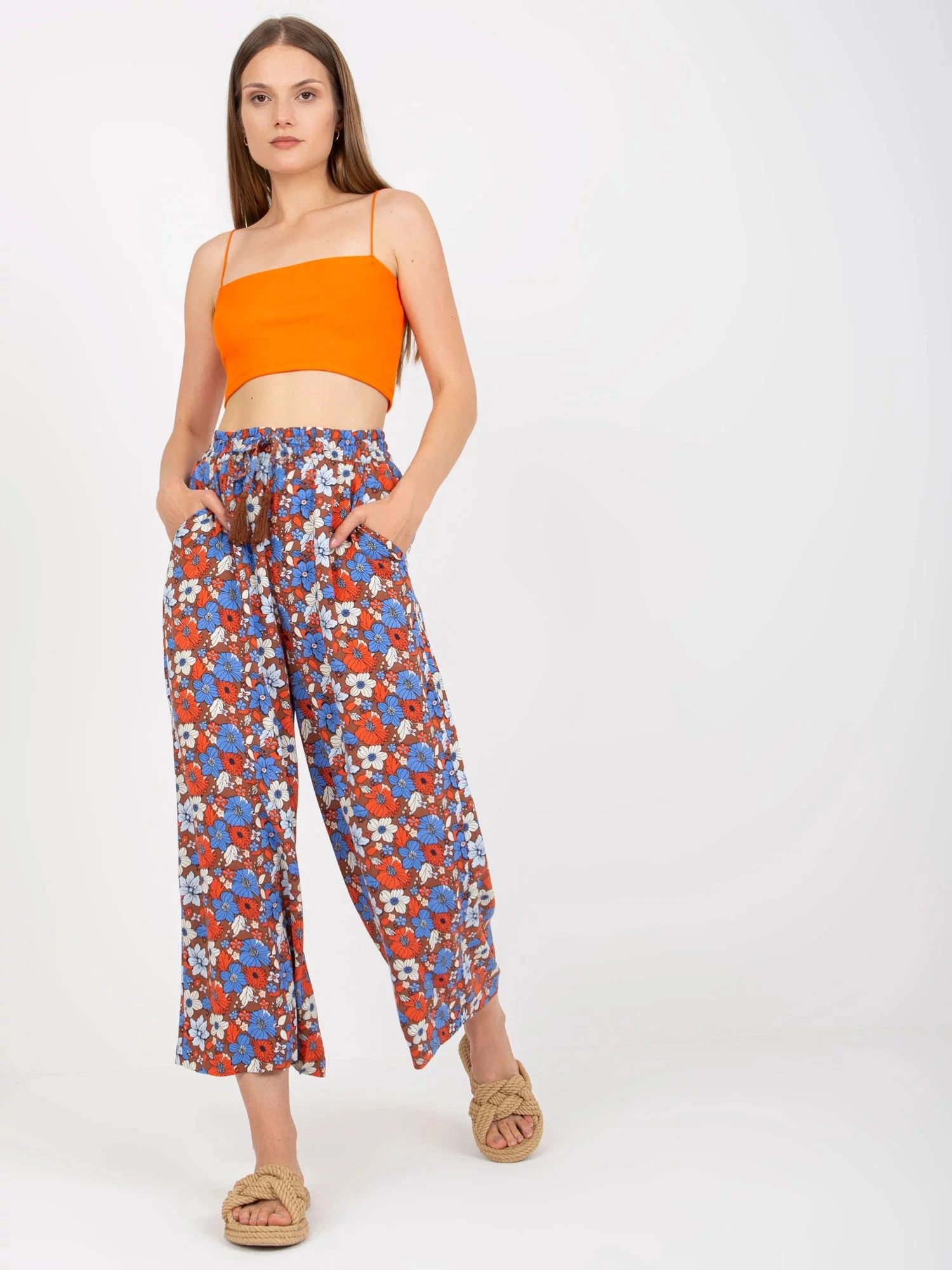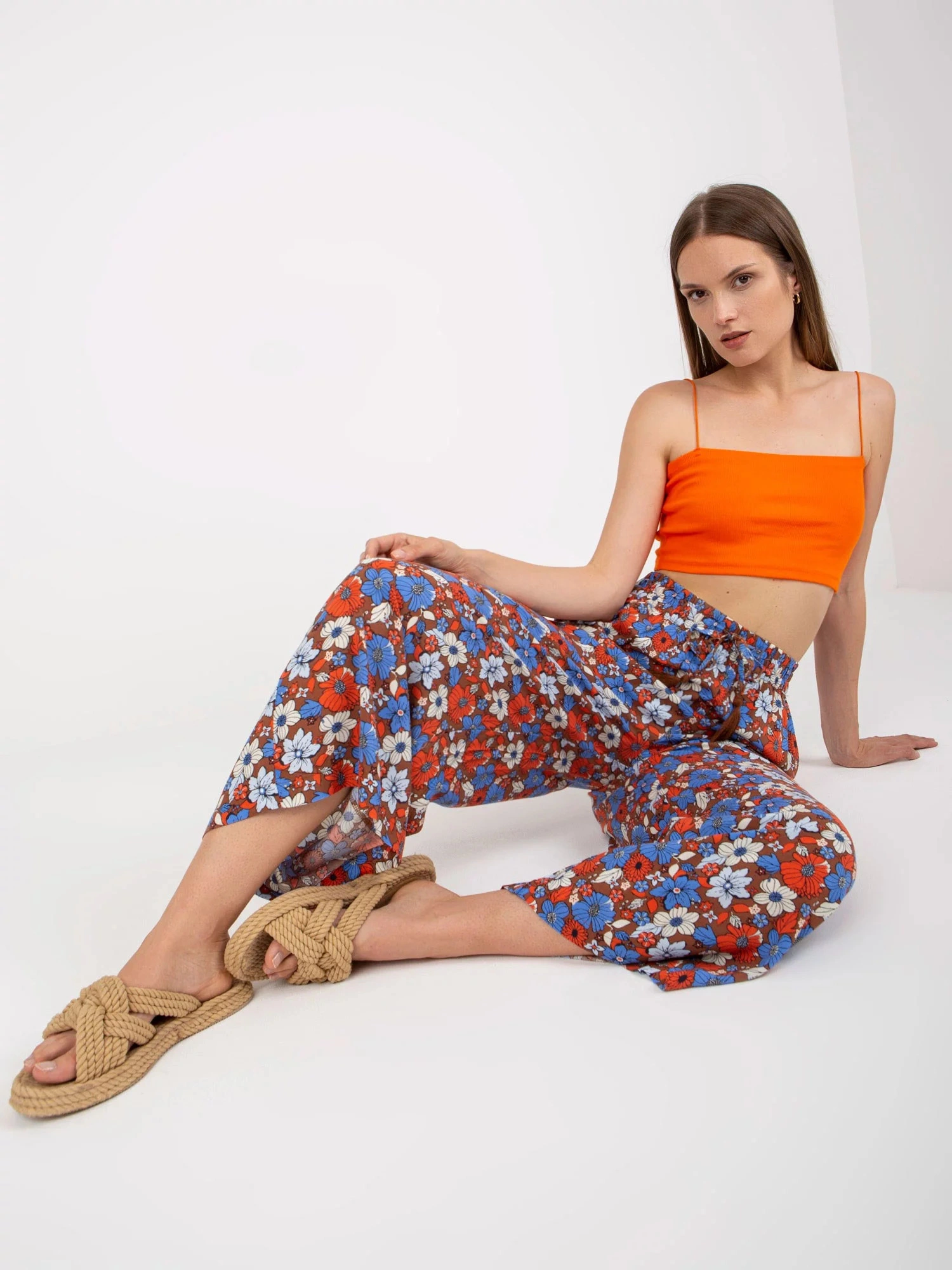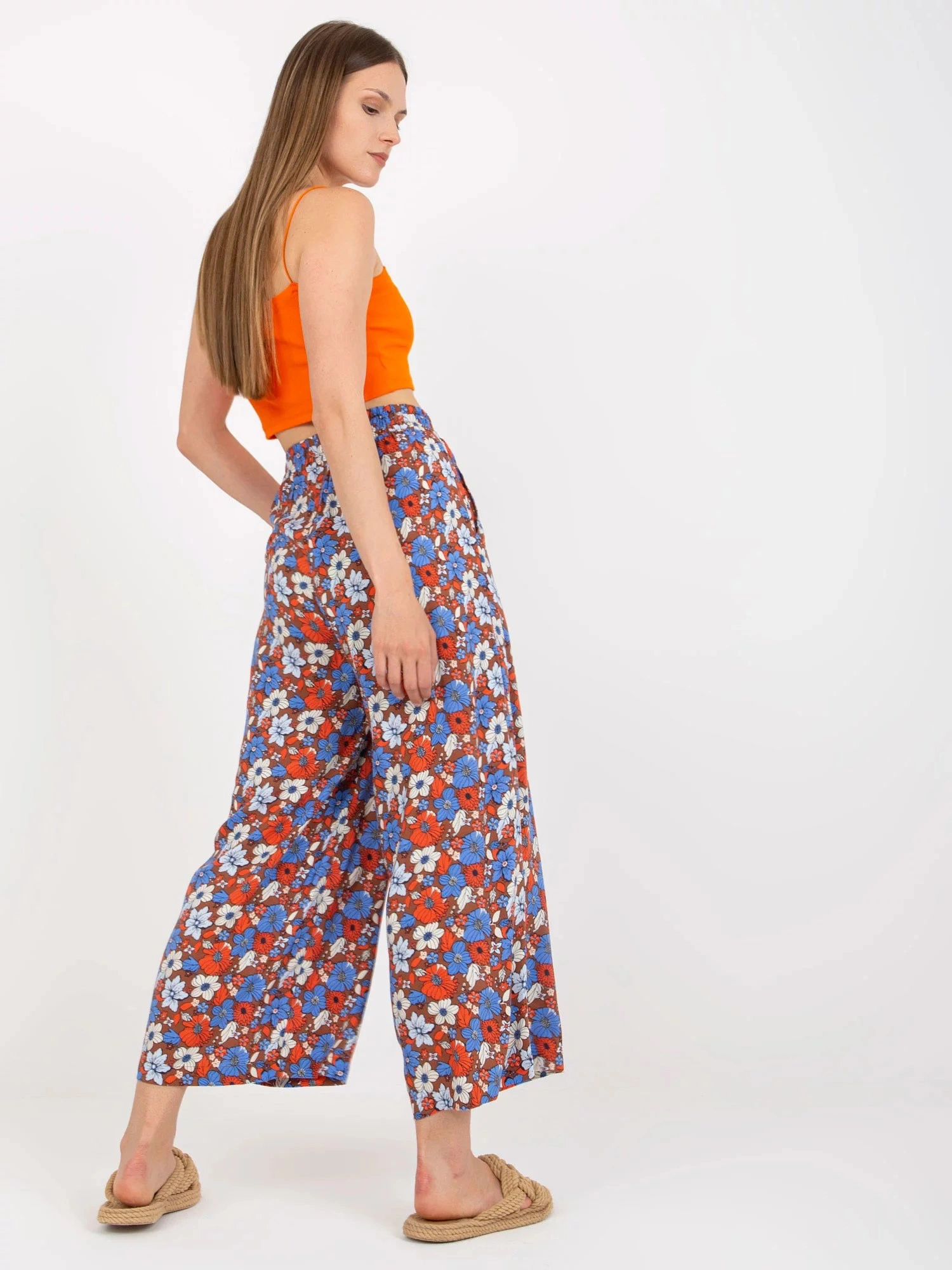 Rozměry kalhot velikosti S měřené na plocho: šířka v pase - 36 cm, výška v pase - 34 cm, celková délka - 92 cm.