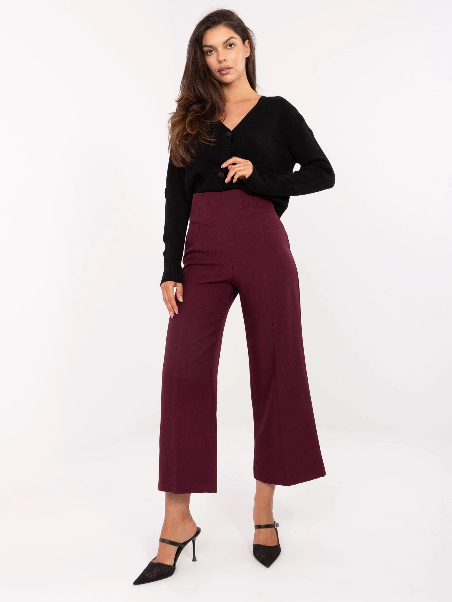 Rozměry kalhot ve velikosti S měřené na plocho: šířka v pase - 36 cm, výška v pase - 35 cm, šířka v bocích - 47 cm, celková délka - 97 cm.