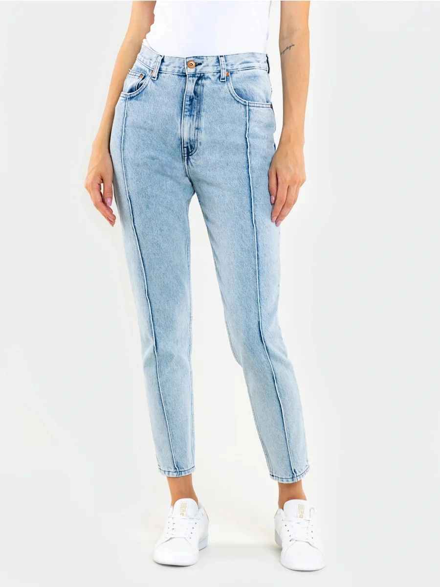 Džíny pro maminky - váš dokonalý pár je právě tady, vysoký nárt, poutka na pásek, poklopec na zip, pět kapes, úzká zúžená nohavice, sedí na kotníku, uvolněný střih.