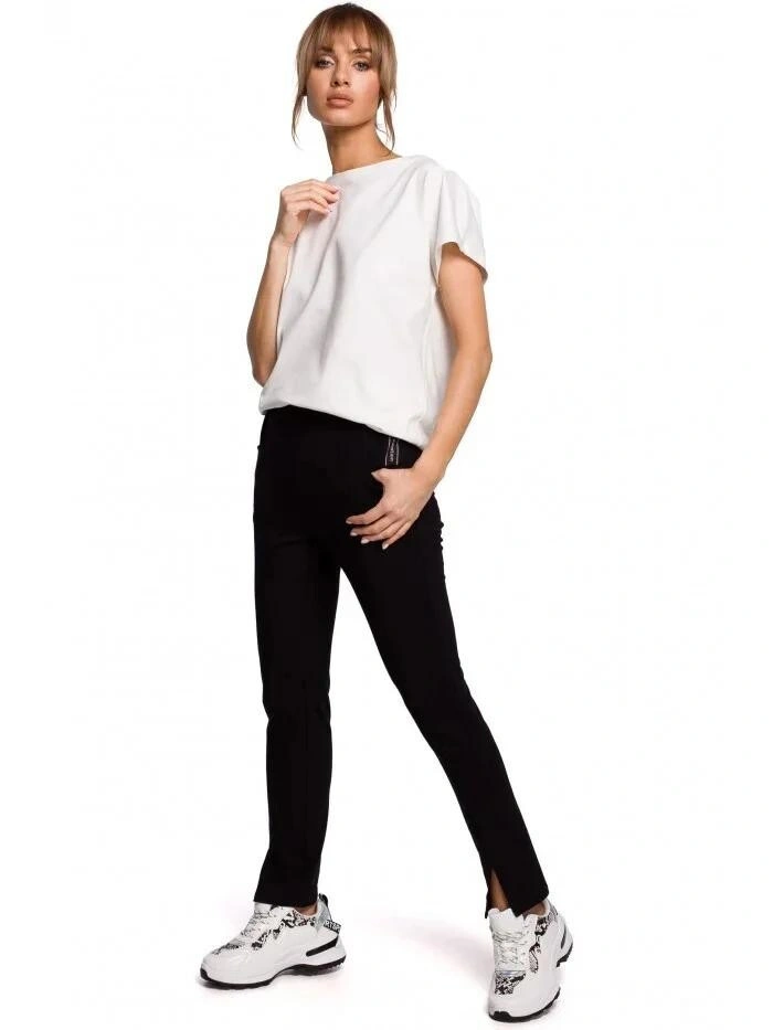 Není nic lepšího než pohodlné kalhoty na každodenní nošení. Tyto kalhoty s originálními rozdělenými nohavicemi, pružným pasem a ozdobným pruhem na boku jsou originálním a všestranným kouskem. PODROBNOSTI O VÝROBKU: pletenina rovné kalhoty jogger s předními rozparky a ozdobným prošitím na bocích obou nohavic boční geometrické kapsy ozdobný pruh s logem v levé kapse elastický pas naše modelka měří 171 cm a nosí velikost S