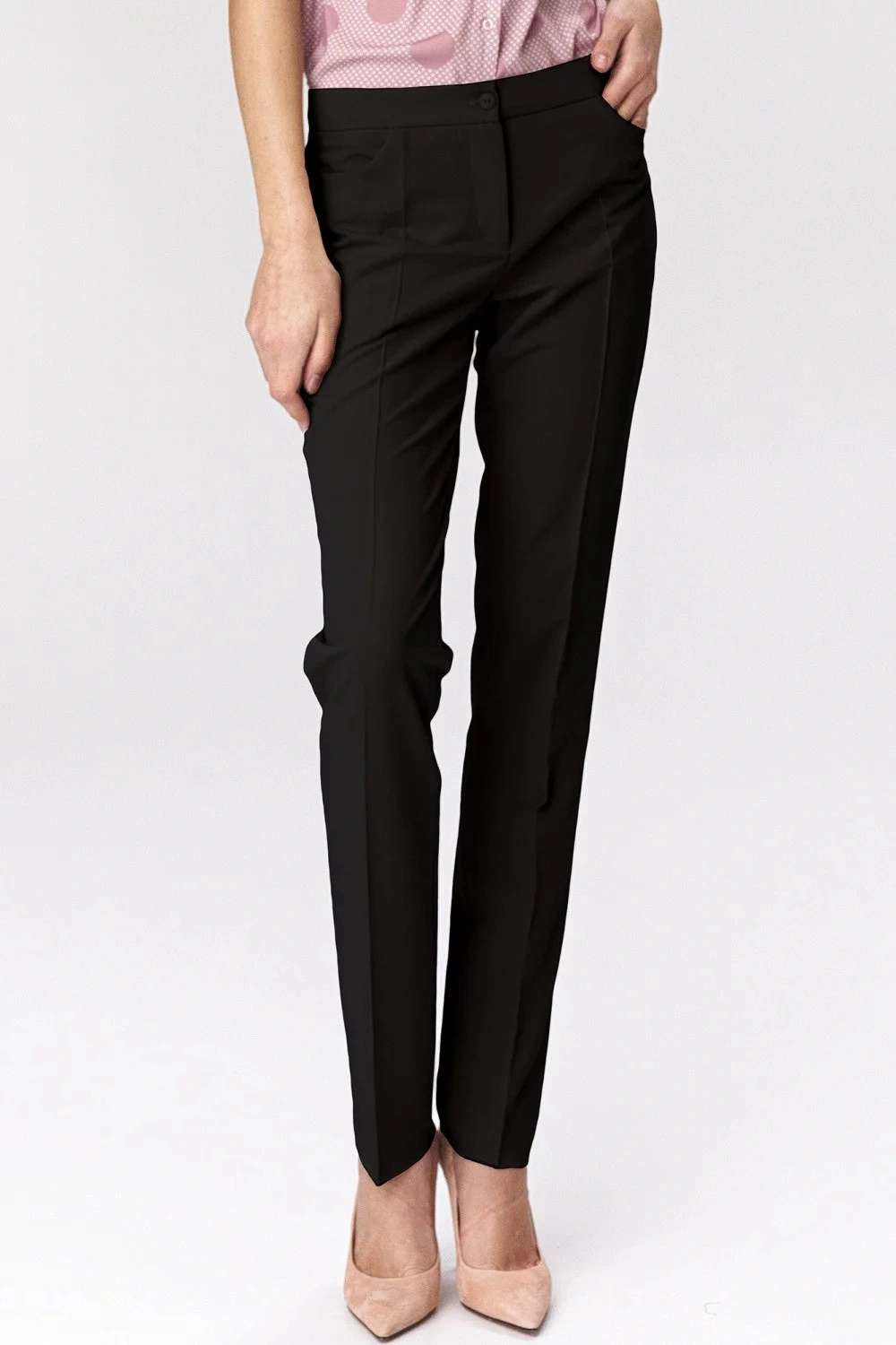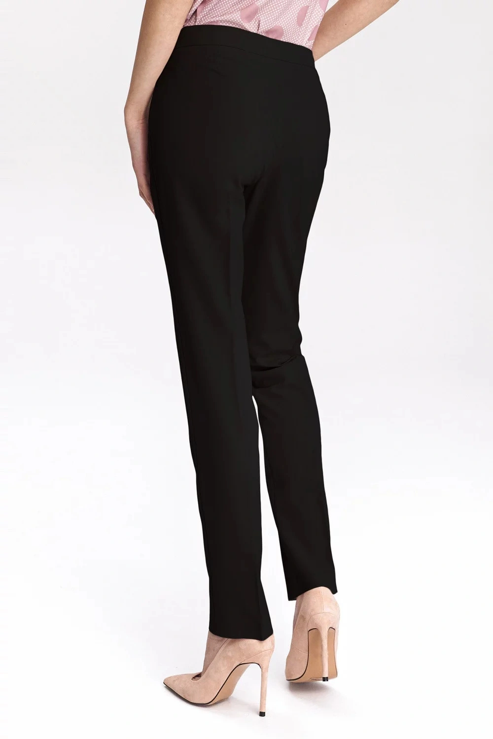 Klasické černé dámské kalhoty si najdou své místo jako prvek jemného kancelářského stylu. Linie šitá na míru krásně zvýrazňuje ženské tvary a díky nadčasovému střihu se kalhoty hodí k sakům a blejzrům všech střihů. Materiál příjemný na dotek s příměsí viskózy zajišťuje vysoký komfort nošení.