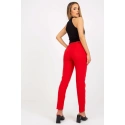 Dámské kalhoty s vysokým pasem, zúženými nohavicemi, zapínáním na knoflík a zip. Kalhoty mají na bocích kapsy a jsou doplněny páskem.