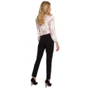 PODROBNOSTI O VÝROBKU: tkané kalhoty s úzkými nohavicemi s řasením v přední části zadní nohavice se středovým prošitím rozparky v zadní části zapínání na zip a knoflík v přední části naše modelka je 173 cm vysoká a nosí velikost S