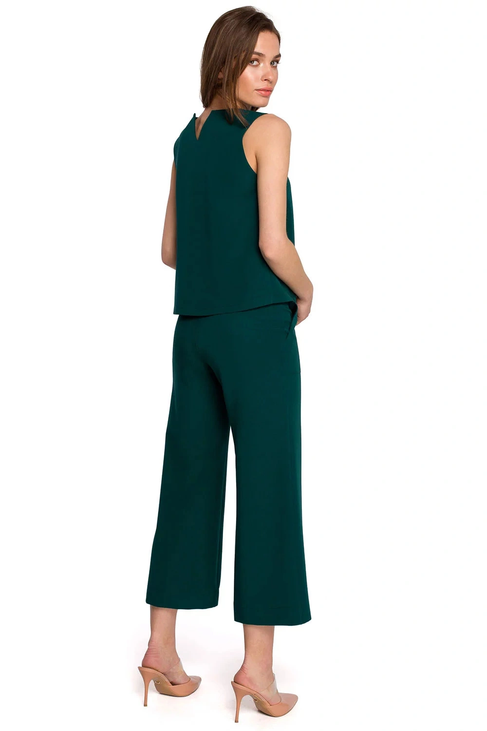 Dámské kalhoty S256 - Stylove tmavě zelená M-38