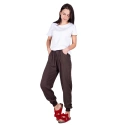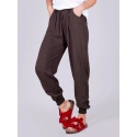 Dámské letní kalhoty v khaki barvě. Mají dvě praktické boční kapsy. Je vyrobena z jemné a lehké viskózy, která je ideální pro teplé dny. Díky stahovací šňůrce v pase si je můžete přizpůsobit svým individuálním potřebám a šňůrka má ozdobnou funkci. Spodní část nohavic zakončená širokými švy jim dodává ležérní vzhled.