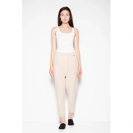 Dámské vypasované, pletené kalhoty. Vysoký pas. Kapsa, ozdobné prošívání na zadní straně, které zešt