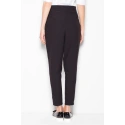 Kalhoty se zvýšeným pasem a zipem na boku. Skryté kapsy v šikmých švech. Kalhoty z tmavě modrého lnu