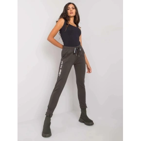 Tmavě khaki bavlněné dámské tepláky. Doplňky: kapsy, elastický pas, popruhy složení látky: 90 % bavl