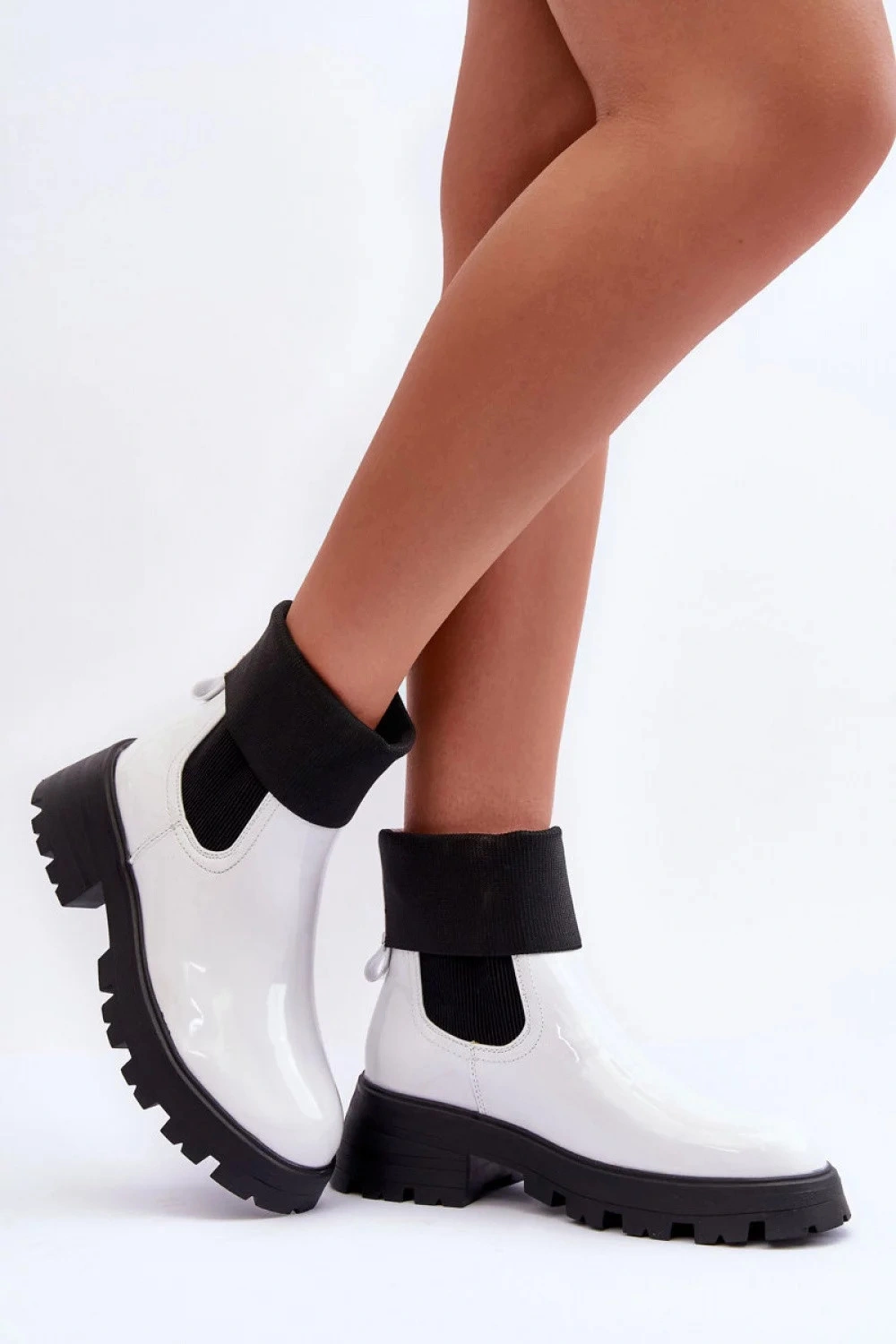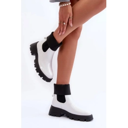 Dámské boty byly vyrobeny z ekologické kůže. Stojí na masivním, plochém podpatku a platformě. Svršek má elastické vsadky. Tento model je nazouvací se zakulaceným nosem. Platforma a podpatek zajistí stabilitu při každém kroku. Tyto pantofle byste rozhodně měli mít ve svém šatníku!