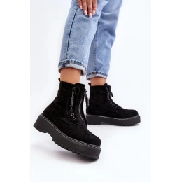 Dámské trapery z ekologického semiše. Stojí na silné platformě a plochém podpatku. Svršek v délce ke kotníkům. Zapínání na zip a ozdobné tkaničky. Zaoblená špička. Vyztužený podpatek. Měkká stélka z ekokůže pro pohodlí během nošení. Rozhodně byste je měli mít!