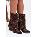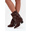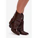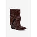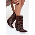 Dámské boty ve stylu kovbojských bot, vyrobené z ekokůže, jsou módní volbou na podzimně-zimní sezónu. Model je postaven na stabilním, zúženém podpatku typu sloupek, který zdůrazňuje západní styl. Vytočená vysoká část s ozdobou dodává originální a stylový vzhled. Boty jsou nazouvací, s dodatečným zipem pro snadné obouvání a sundávání. Vnitřek je vyhřátý pěnou potaženou látkou, která zajišťuje pohodlí a teplo v chladnějších dnech. Je to výjimečný model, který kombinuje pohodlí s nadčasovým stylem – ideální jak k džínům, tak k bohémským šatům. Při výběru velikosti se řiďte tabulkou velikostí.