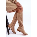 Dámské boty jsou vyrobeny z ekologického semiše. Plochý podpatek zajistí stabilitu na každém kroku. Pata je vyztužená a špička je špičatá. Tento model se zapíná na zip po celé délce svršku. Stélka z ekokůže zajistí pohodlí při používání.
