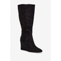 Dámské kozačky z ekokože, osazené na platformě, spojují eleganci s pohodlím. Zapínání na zip zajišťuje snadné obouvání a vyztužení podrážky zaručuje teplo v chladnějších dnech. Nad kolena sahající svršek jim dodává klasický vzhled, zatímco špičky ve tvaru mandlí přidávají jemnost. Ideální pro zimní outfit, tyto kozačky skvěle ladí s šaty i sukněmi.