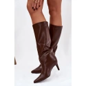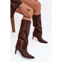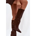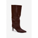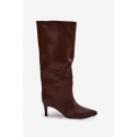 Dámské kozačky s vysokým shaftem sahajícím za koleno jsou elegantní a stylovou volbou na podzimně-zimní sezónu. Snadno se obouvají a jsou na tenkém podpatku, což nejenže dodává postavě lehkost, ale také jemně prodlužuje nohy a zvýrazňuje ženské tvary. Špičaté nosy přidávají rafinovaný akcent a kvalitní materiál zajišťuje odolnost a pohodlí. Tyto kozačky se skvěle hodí jak ke elegantním šatům a sukním, tak i k volnějších módním outfitem, čímž se stanou výrazným doplňkem zimního stylu. Při výběru velikosti prosíme podle tabulky velikostí. Při výběru velikosti se řiďte tabulkou velikostí.