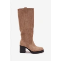 Dámské kozačky z ekologické semiše jsou skvělou volbou na podzimně-zimní sezónu. Model na robustním sloupkovém podpatku zajišťuje stabilitu a pohodlí při nošení. Zaoblené špičky dodávají celkovému vzhledu klasický styl a praktické zapínání na zip usnadňuje obouvání a svlékání. Vnitřek vyhřívaný měkkým obouvacím plédem zaručuje tepelný komfort v chladnějších dnech. Jsou to univerzální kozačky, které se skvěle hodí jak pro každodenní, tak i elegantnější stylizace. Při výběru velikosti se prosím řiďte tabulkou velikostí. Při výběru velikosti se řiďte tabulkou velikostí.