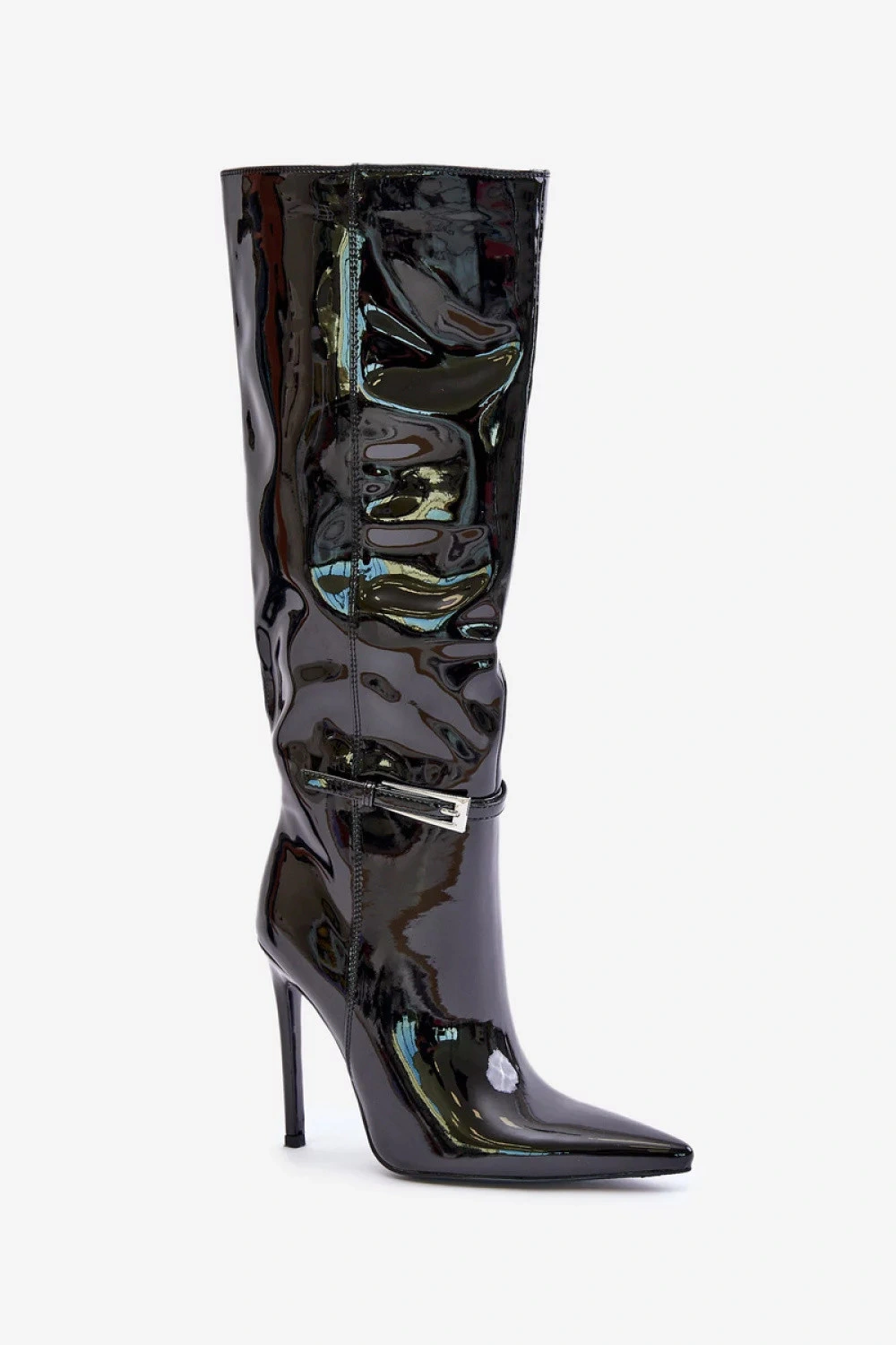 Dámské kozačky jsou vyrobeny z ekologické kůže. Boty jsou zapínány na zip, co usnadňuje jejich obouvání. Boty mají podpatky ve tvaru jehly a jsou vybaveny koženým podšíváním. Špičaté špičky opticky zjemňují nohy a zpevněný zápatek poskytuje dodatečnou oporu. Tento model se skvěle hodí na večerní výlety!