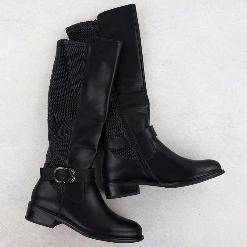 Popis Dámské kozačky s ozdobným blokovým páskem černé Filippo 7437