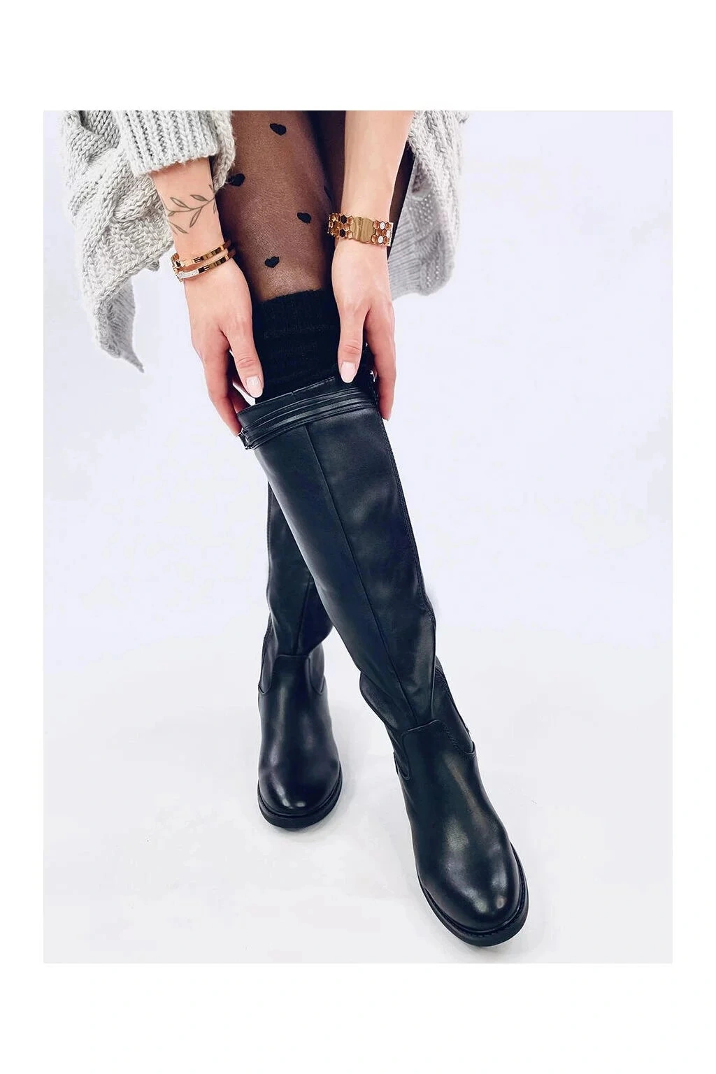 Kozačky mají u otvoru ozdobnou přezku. Podpatek má 3,5 cm.