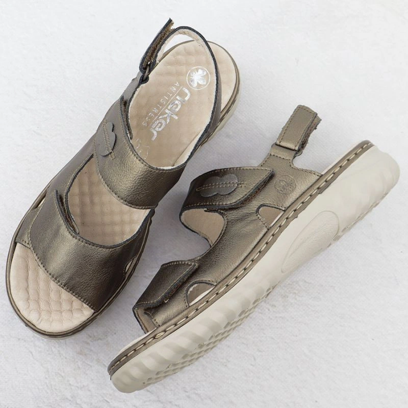 Popis Dámské kožené hnědé sandály Rieker 60462-90 na suchý zip