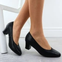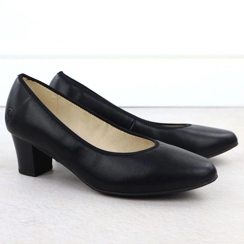 Popis Dámské kožené lodičky na nízkém jehlovém podpatku černé Rieker 44650