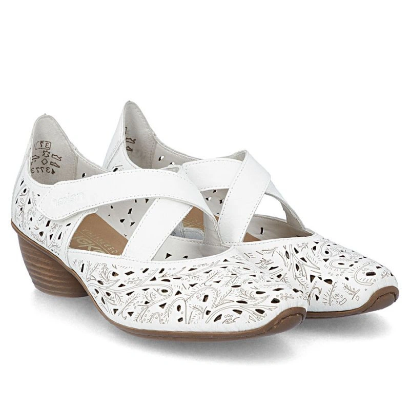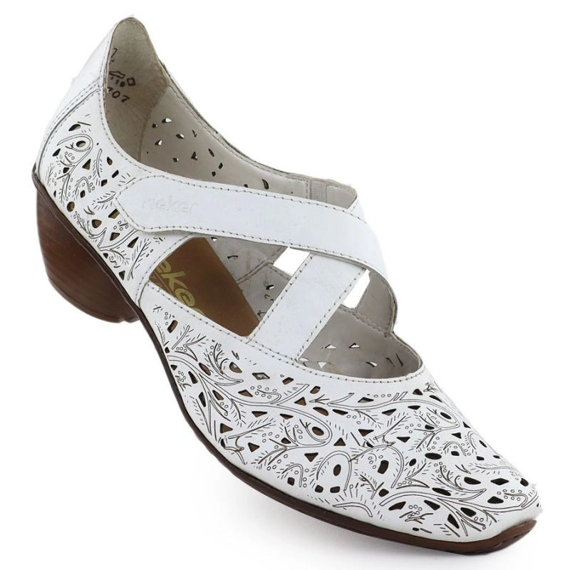Popis Dámské kožené polobotky na podpatku bílé Rieker 43773-80