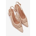 Dámské sandály na platformě jsou elegantní volbou určenou pro výjimečné příležitosti. Jejich stylový vzhled upoutává pozornost a zakryté, špičaté špičky dodávají celku šmrnc a ženský charakter. Stabilní podpatek typu platforma zajišťuje pohodlí při chůzi a jemně zeštíhluje siluetu. Zapínání na přezku umožňuje dokonalé přizpůsobení noze, což garantuje komfort a jistotu při každém kroku. Je to skvělá volba na různé oslavy, večírky a elegantní vycházky – ideální pro ženy, které chtějí spojit styl s pohodlím. Při výběru velikosti se řiďte tabulkou velikostí.
