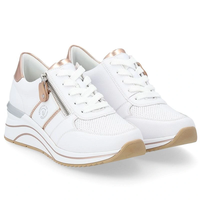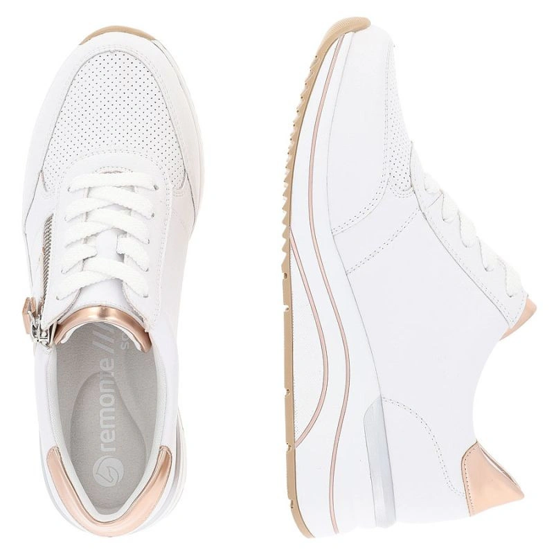 Popis Dámské kožené tenisky na platformovém podpatku bílé Remonte Rieker D0T04-80