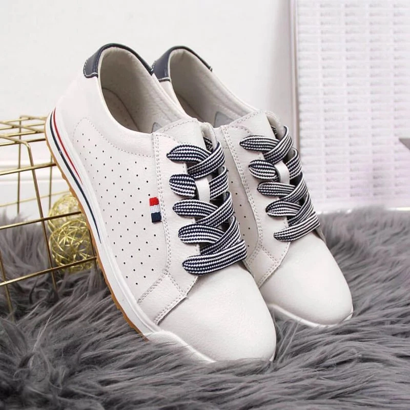 Dámské tenisky z ekologické kůže. Stojí na platformě. Tento model je mimořádně pohodlný díky stélce