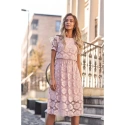 Vrchní díl:- 92 % nylon - 8 % elastan Spodní díl:- 95 % polyester - 5 % elastan Tyto elegantní šaty mají půvabnou siluetu a jsou navrženy s celoplošnou krajkou. Květinový vzor dodává romantický nádech, délka do poloviny lýtek zajišťuje stylový vzhled. Zkrácený top a šaty v midi délce mají zespodu tkanou podšívku. PODROBNOSTI O VÝROBKU: uvnitř tkaná látka, vně krajka, obě vrstvy spojené dohromady střih fit and flare krajkové rukávy délka pod kolena skryté zapínání na boční zip naše modelka je vysoká 171 cm a nosí velikost S
