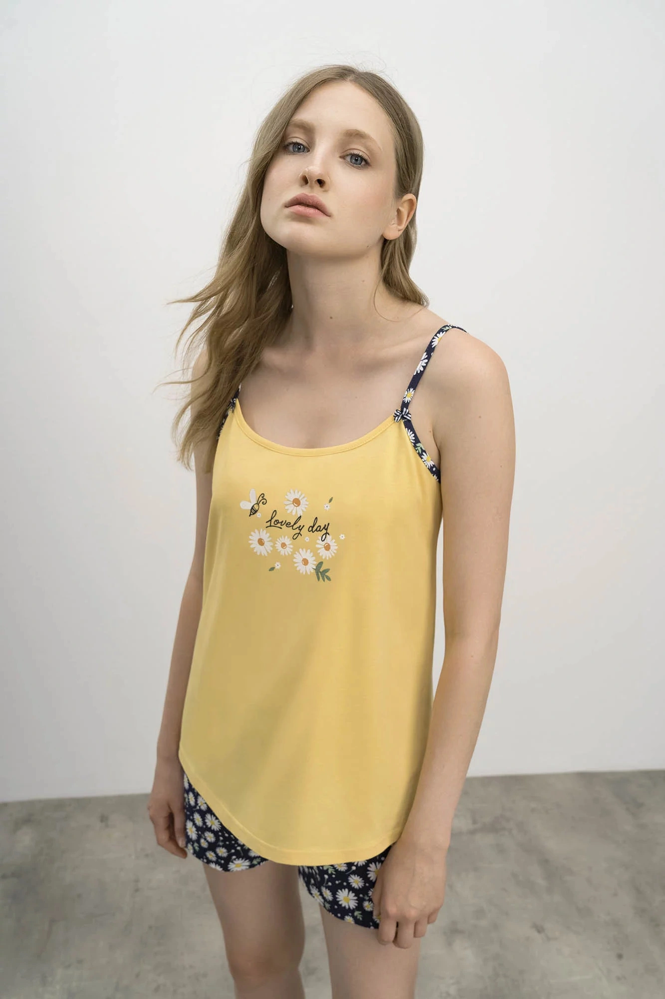 Dámské krátké pyžamo babydoll 16203 - Vamp L žluto-modrá